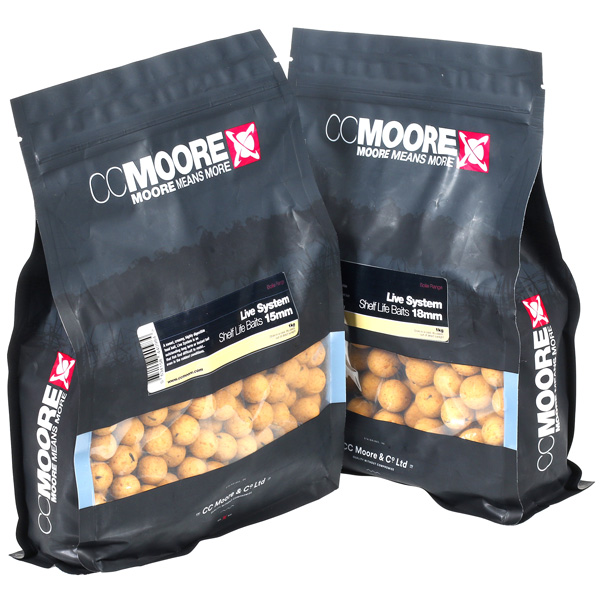 Бойли CC Moore Live System Shelf Life – одні з найбільш унікальних продуктів компанії CC Moore, що відрізняються неповторним запахом та смаковими якостями. Live System Shelf Life поєднують у собі аромат солодкого сиропу та дріжджів – це дієве поєднання з’явилося в результаті низки експериментів, проведених співробітниками компанії на типових коропових водоймах та річках. Правильна пропорція солодких інгредієнтів та дріжджів створює імпульс до харчової активності риби, дозволяючи розраховувати на клювання найпасивніших екземплярів коропа – Лів Систем Шелф Лайф багаторазово проявляв себе у складних умовах змагань, коли харчування риби зводилося до мінімуму. Контрастний пісочний колір бойлів підвищує їхню візуальну помітність на тлі темного донного рельєфу.
