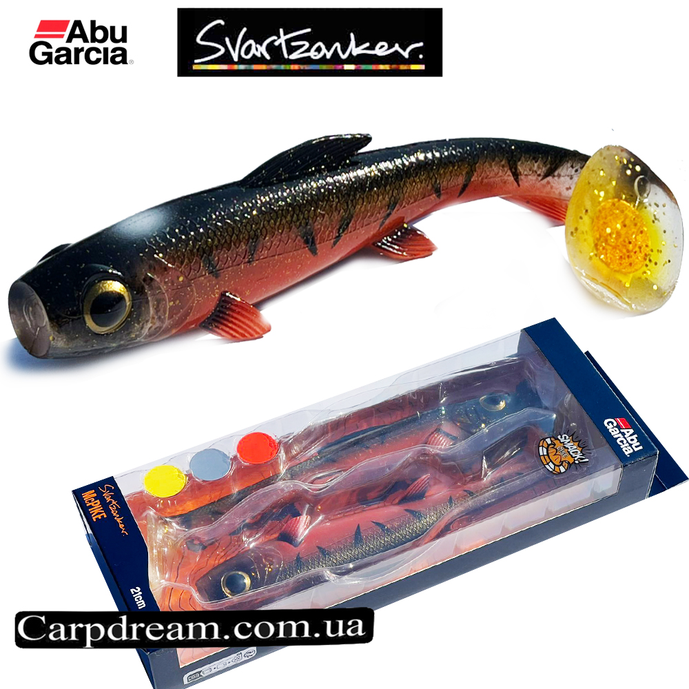 Abu Garcia Svartzonker McPike 17см (артикул 1590294) — це велика силіконова приманка (віброхвіст), розроблена відомим шведським рибалкою Класом Классоном (Svartzonker) спеціально для лову трофейної щуки.